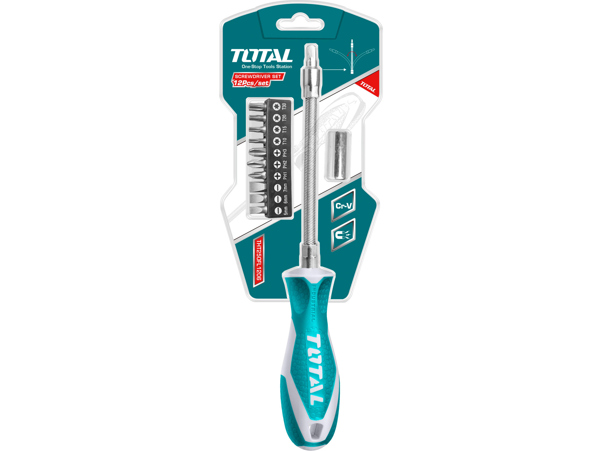 Chave de fendas com eixo flexível e pontas, conjunto de 12, CrV
