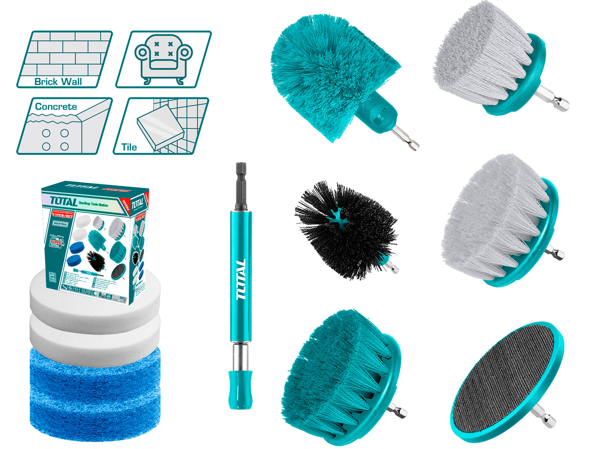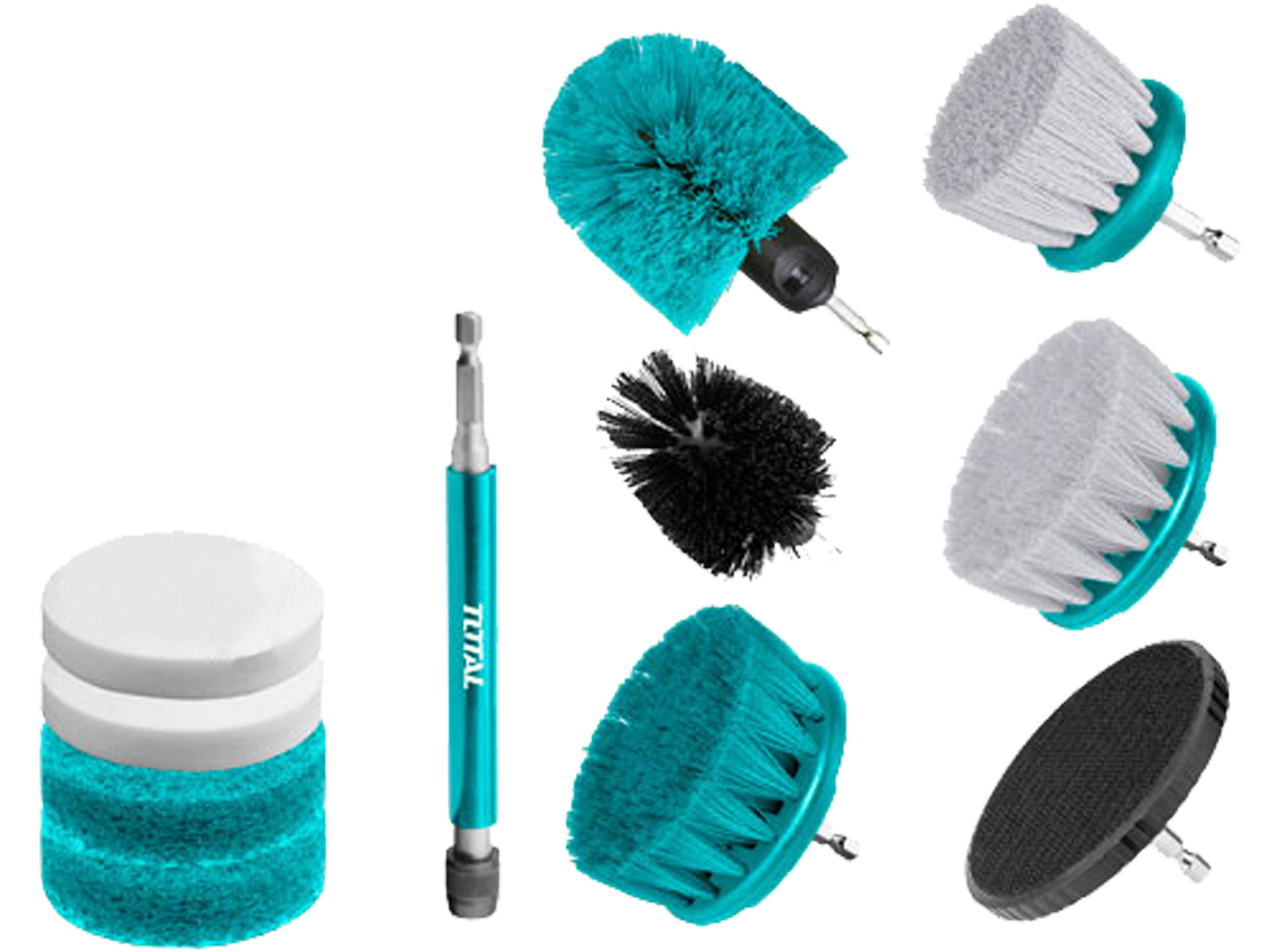 Além das escovas, o conjunto também inclui uma escova de lixar de 360 graus, ideal para remover sujidade e resíduos persistentes. Um suporte de extensão de 6 polegadas também está incluído para limpar locais de difícil acesso.