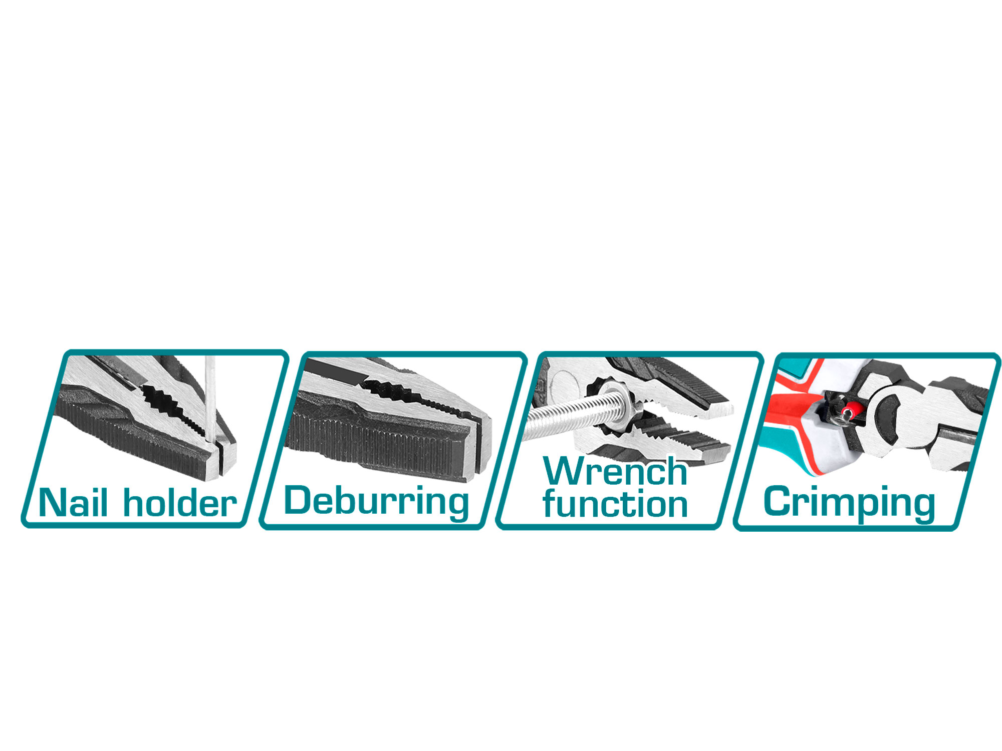 Total Com o alicate combinado da , tem à sua disposição uma ferramenta fiável, duradoura e eficiente que lhe servirá para muitas tarefas.