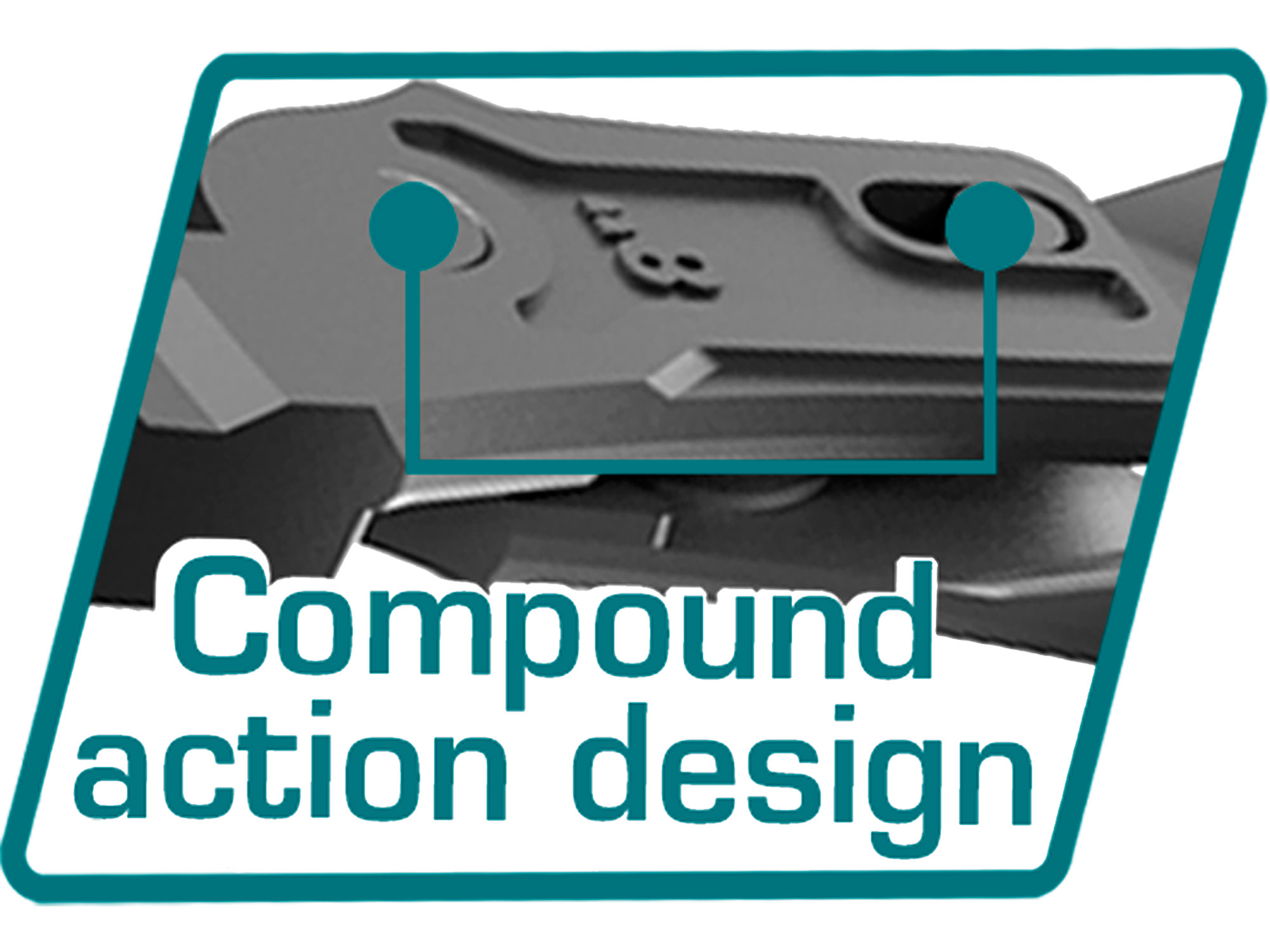Uma das vantagens notáveis deste alicate é a sua eficiência energética. Poupa até 65% de energia em comparação com os alicates convencionais. Isto significa que precisa de usar menos força para fazer o mesmo trabalho. Isto reduz a fadiga e permite-lhe trabalhar durante mais tempo.