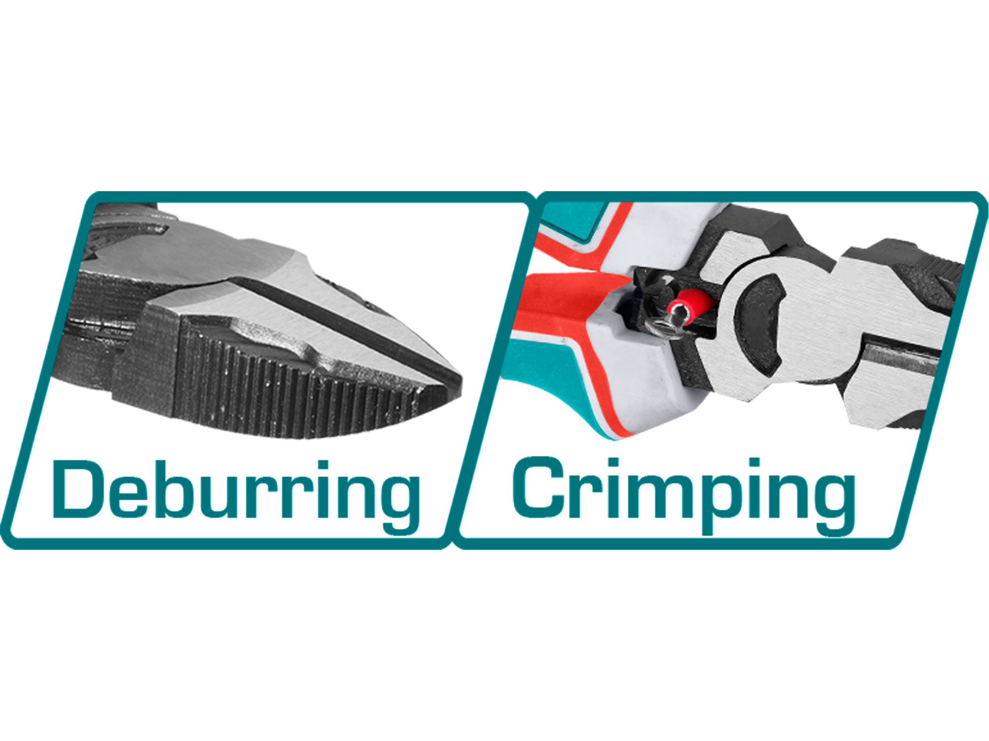 Total Os alicates de corte lateral são ideais para uma vasta gama de aplicações industriais e de bricolage. São ideais para agarrar, puxar, dobrar e cortar fios e pequenas peças metálicas.