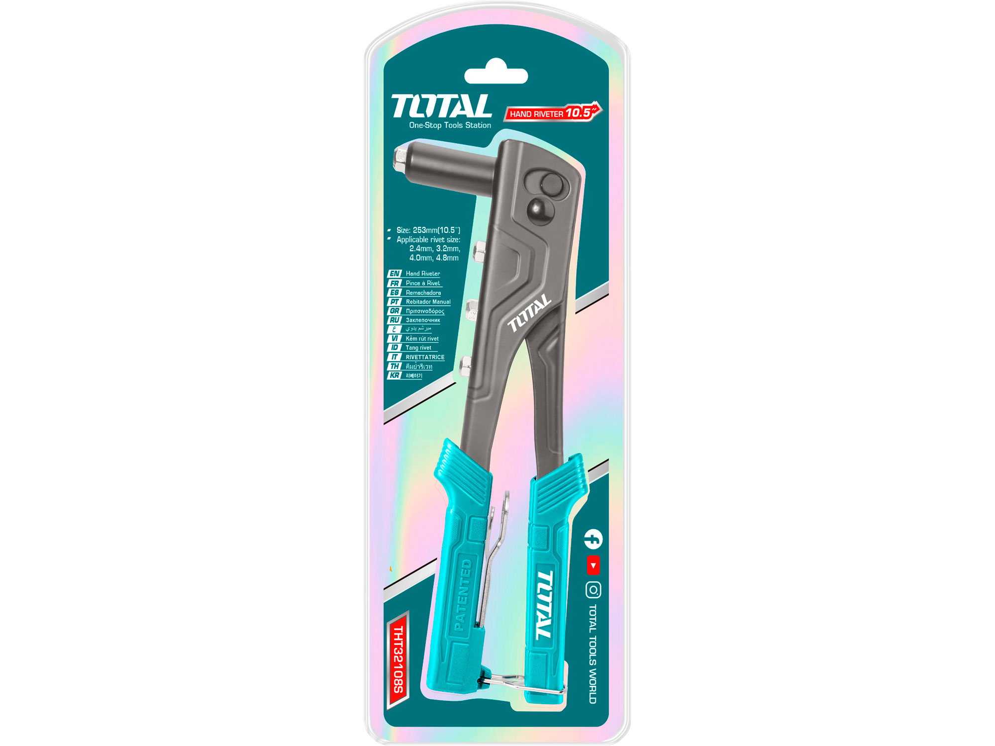 - Com o seu comprimento de 270 mm, oferece uma boa alavanca para remover mesmo rebites apertados sem muito esforço. - O alicate de rebitagem é adequado para vários tamanhos de rebites, incluindo 2,4 mm, 3,2 mm, 4 mm e 4,8 mm. - Possui uma pega antiderrapante para uma aderência segura durante o trabalho. - O alicate é ideal para comerciantes e entusiastas da bricolage que trabalham regularmente com rebites. - É leve e compacto, o que o torna ideal para utilização móvel. - O alicate de rebitagem é fácil de utilizar e permite poupar tempo e esforço em comparação com a rebitagem manual. - É adequado para uma variedade de materiais, incluindo metal, plástico e couro. Total - Com o alicate de rebitagem pode colocar ou retirar os rebites de forma precisa e eficiente. Fabricante