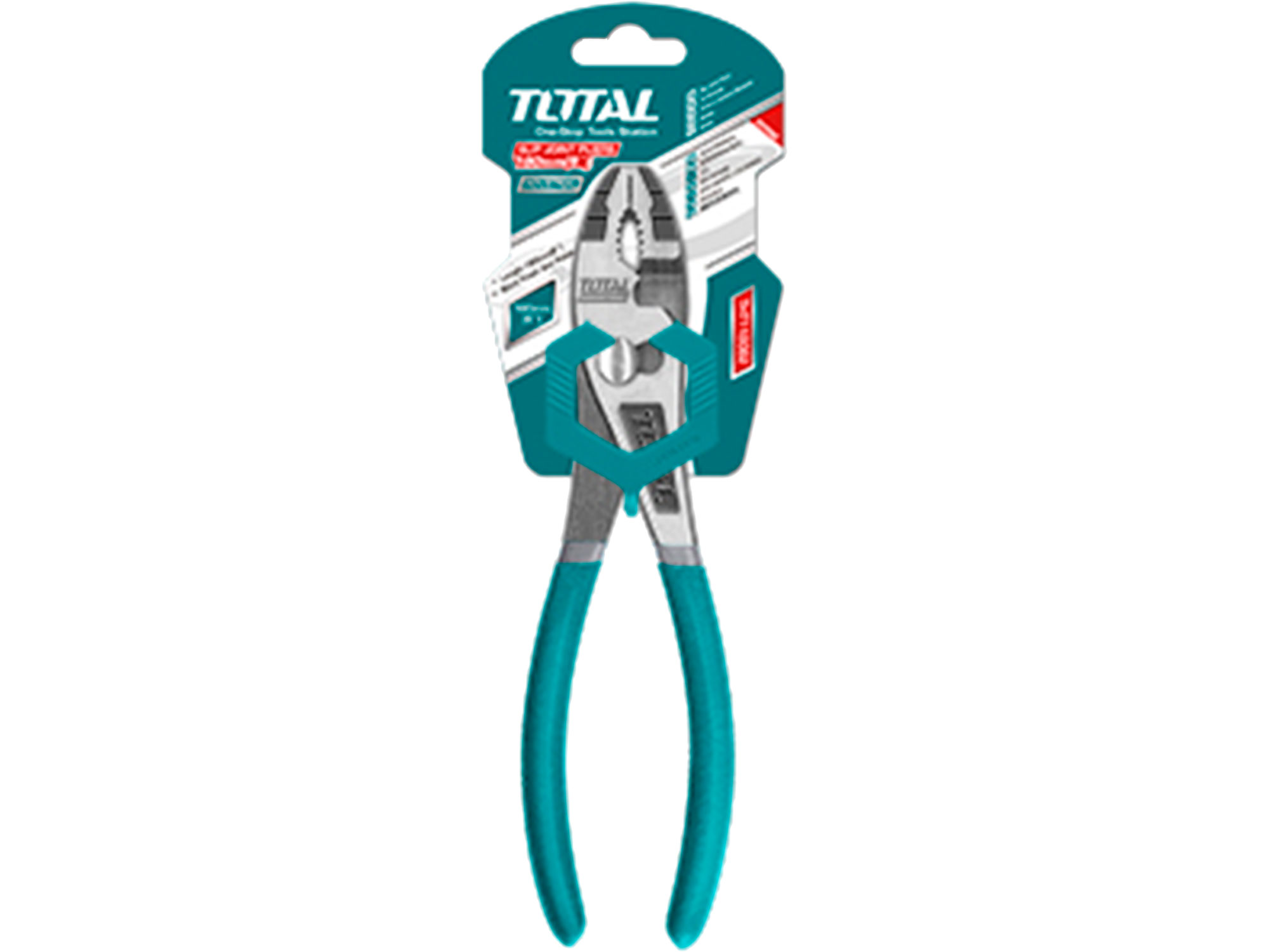 Total Os alicates de articulação deslizante são ideais para agarrar e segurar peças de vários tamanhos. Possui uma articulação deslizante que permite um ajuste flexível à peça de trabalho. Além disso, as arestas afiadas garantem uma aderência firme e uma penetração no material.