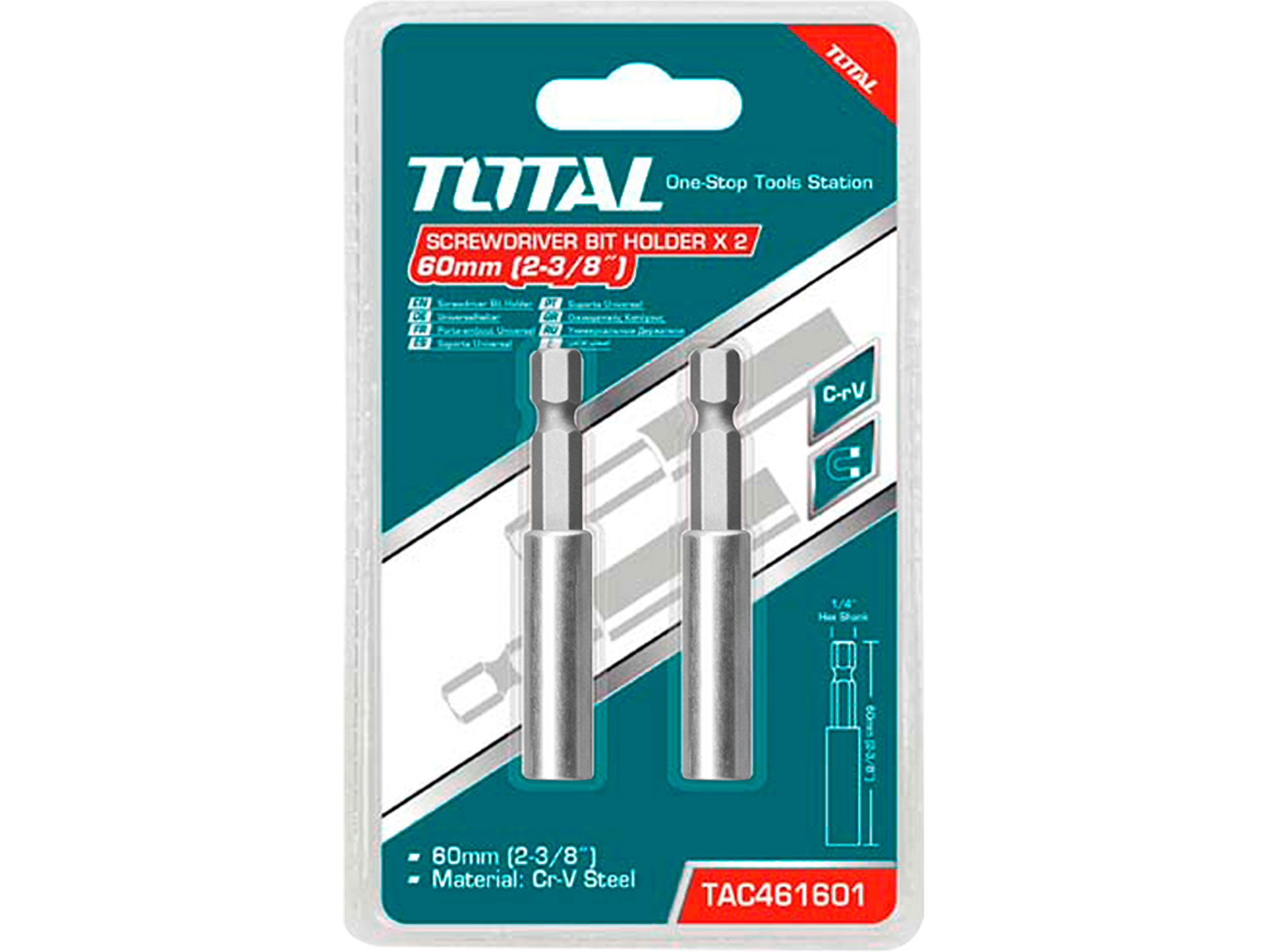 Total Estas extensões de parafuso são fabricadas a partir de uma liga robusta de aço e crómio-vanádio e oferecem um comprimento adicional de 60 mm para os seus requisitos de fixação. Este conjunto inclui duas extensões de parafuso que oferecem maior durabilidade e longevidade. São ideais para aplicações que requerem um parafuso mais comprido, como a fixação de objectos pesados ou em áreas onde o espaço é limitado. As extensões de parafuso são fáceis de instalar e utilizar e são uma adição prática à sua coleção de ferramentas.