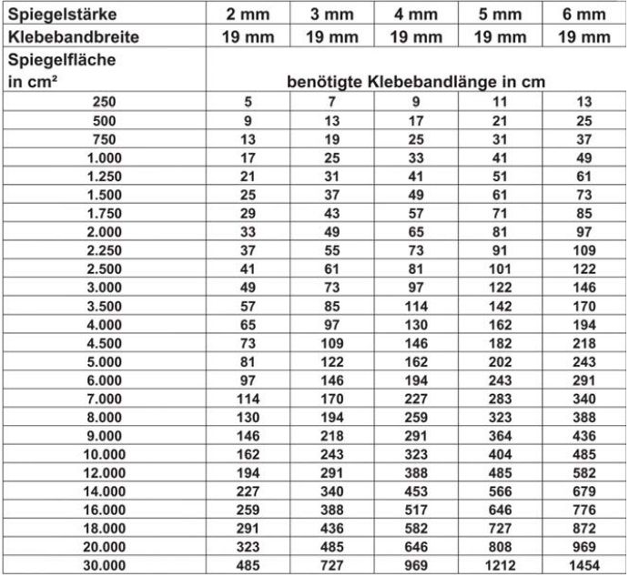 Nota especial: Na colagem, devem ser respeitadas as diretrizes técnicas do Instituto do Comércio de Vidros Glaserhandwerks da Verlagsanstalt Handwerk GmbH, Düsseldorf n.º 11 Edição 2006/11 devem ser respeitadas. No caso de colagens suspensas e em ângulo, as fitas adesivas para espelhos apenas podem servir como auxiliar de montagem , sendo absolutamente necessária a fixação mecânica.